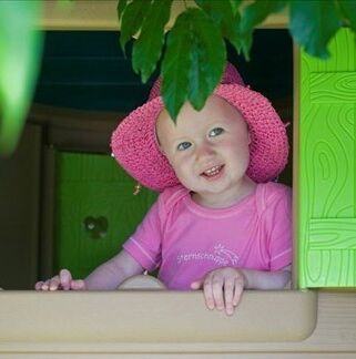 3. 长时间外出时,适当在暴露部位涂抹只含矿物质成分的物理性防晒乳液(防晒乳液不只是搽脸,所有露出来的、晒得到的部位,包括宝宝耳朵、脖子后面、四肢外侧等,都要搽到)。