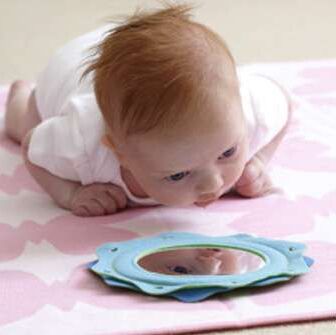 让宝宝对着镜子,宝宝会对镜中“小伙伴”做出亲昵、友爱的反应,实际上就是宝宝对他人、对周围环境的信任感和安全感的体现,这些正是社会性内容的一部分,而这也是家长们应当掌握的孩子早教最佳时机。 可能不少妈妈已经发现,自己的宝宝对镜子很感兴趣。当宝宝第一次看到镜子时可能会有些紧张,但慢慢地宝宝就会对镜子里那个“小伙伴”感兴趣了。如果给宝宝一个小镜子看,他的视线会追随着镜子的移动而移动;每当把宝宝抱到镜子跟前时,他也许会很兴奋,也许会有些害羞;等宝宝再大些时,他就会伸出手去触摸对面镜子中的人,看着镜子中的自己做个怪样,吐吐舌头,开心地笑起来。 宝宝对镜中“小伙伴”的亲昵、友爱的反应,实际上就是宝宝对他人、对周围环境的信任感和安全感的体现,这些正是社会性内容的一部分,所以说,镜子是培养宝宝社会亲和性的有益玩具,而且对丰富宝宝视觉体验也很有好处,是宝宝的好朋友。 但是,妈妈在给宝宝玩镜子的时候要注意几个问题: 一. 用镜子培养宝宝社会性的最佳时间是在宝宝出生后第8-9周,一定不要错过这个时机。 这时多数宝宝还不能完全独立地竖直头颈,而且也不会自己拿东西,此时最好把镜子挂在宝宝床边,让宝宝躺着看。但应注意经常变换方向,避免宝宝头部总偏向一侧,把头睡偏。 二. 要掌握宝宝与镜子的最佳视距 一般认为镜子应挂在距宝宝眼睛15厘米的地方,不能太远也不宜太近,不能太高也不能低,以宝宝可以平视为宜。等宝宝头颈能够竖直起来以后,可以经常把宝宝抱到穿衣镜或梳妆台前照镜子,逗宝宝与镜子中的自己碰碰头、拉拉手,告诉宝宝镜子里的“小朋友”就是宝宝自己,向镜子里呼唤宝宝的名字。宝宝会觉得非常有趣,慢慢地他就会主动与镜中的“小朋友”交流。 三. 要注意安全 镜子是玻璃制品,易碎,在给宝宝玩时,一定要有大人在旁边看护。特别是要注意镜子边缘是否光滑,最好用胶布把镜子边缘多包两层,以防划伤宝宝。最好用不具危险性且不易碎的不锈钢制品,但要注意镜面平整,影像没有扭曲变形。大小以10-12厘米为宜。 你给宝宝提供的镜子,实际上是给宝宝提供了一个“小朋友”,在宝宝与“小朋友”玩的过程中,宝宝的社交能力也随之得到发展,这也可以帮助孩子提升智力水平,当然,我们也可以看看提高孩子智力水平的七大方法。
